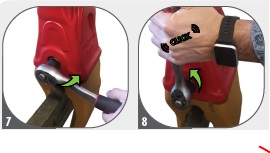 Pomocí nástrčného klíče připevněte zub k adaptéru otočením o 90° (doprava nebo doleva), dokud nezacvakne (obr. 7 a 8).
