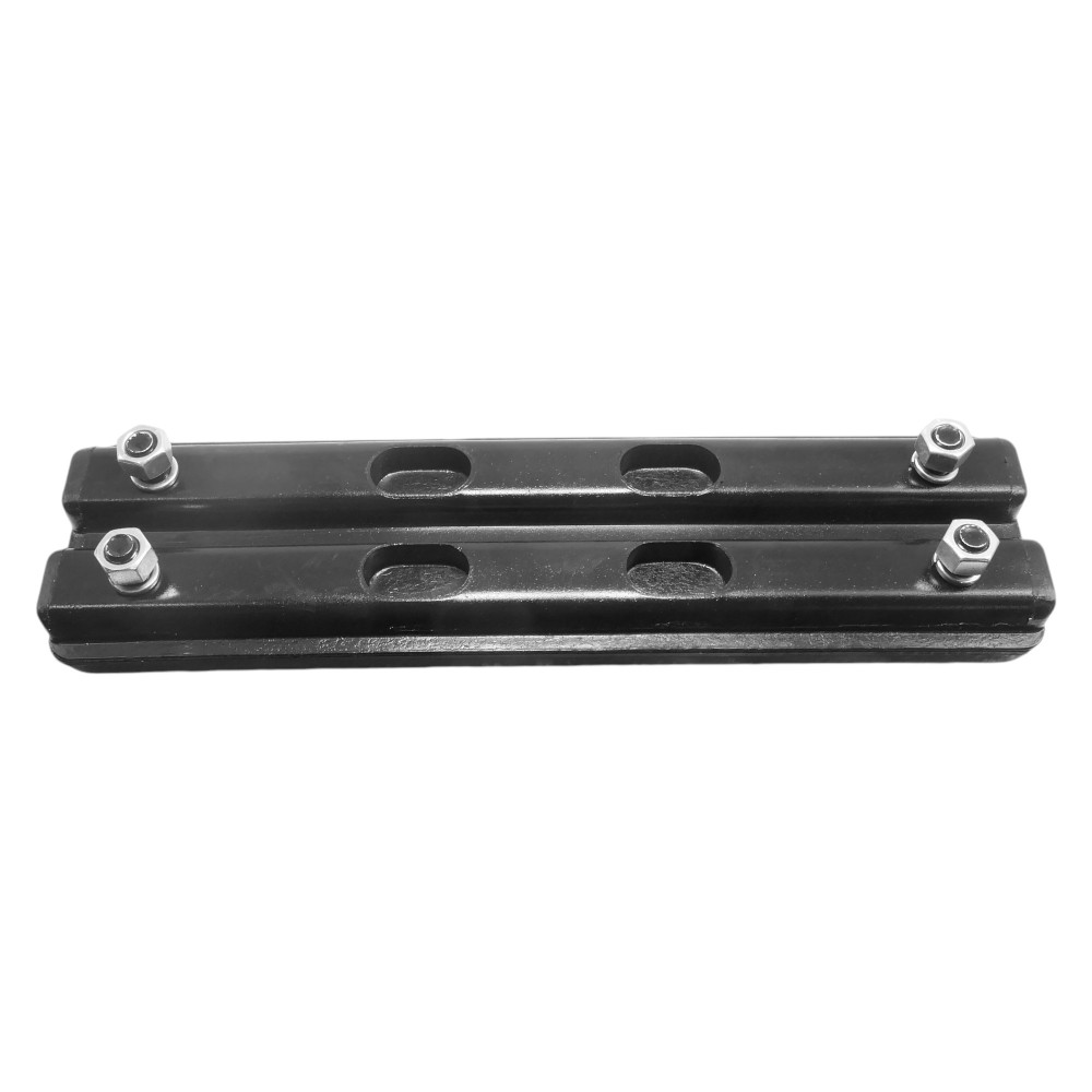 Gumová nálož RP154/350.58/500 je prvek montovaný na ocelové pásy stavebních strojů za účelem zlepšení přilnavosti a ochrany pracovní plochy. Jedná se o nálož typu bolt-on, což znamená, že je připevněna k patě pásu pomocí čtyř šroubů, což zajišťuje stabilní a pevné uchycení.